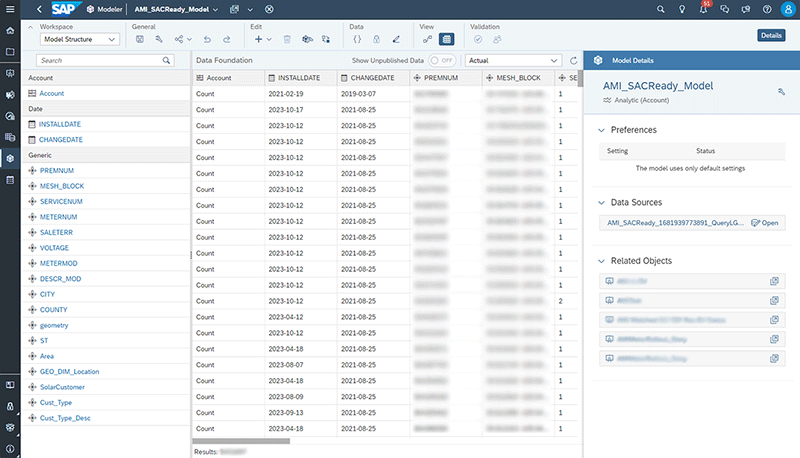 The AMI Rollout Dashboard is a comprehensive SAC dashboard designed to track the installation of AMI meters across 8 states. It provides detailed insights for executives and analysts, including the number of meters installed by state, county, date, and customer type. The technical implementation involves data extraction from Teradata SQL tables, creation of SQL views, and the use of Python for data manipulation and correction. The dashboard includes various visual elements such as maps, tables, and charts, and is built to comply with SAC model standards. The project also involved collaboration with various teams, including GIS, IT, and the Director of Metering. Notably, the dashboard has gained recognition for its user-friendly interface and has provided valuable transparency for the AMI rollout.