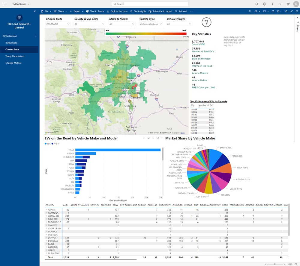 The EV Engineering Insights Dashboard, developed using Power BI, was designed to provide engineers with a comprehensive understanding of the distribution of electric vehicles (EVs) within the Xcel Territory. The dashboard aimed to address the need for a system-wide, spatial view of the electric distribution system. The executive level dashboard initially presented an overwhelming amount of information across over 20 pages, lacking geographical representations. To enhance the technical aspects for hiring managers, the dashboard utilized Power BI's functionality, such as slicers for granular data views, and mapping features to visualize the geographic distribution of EVs.